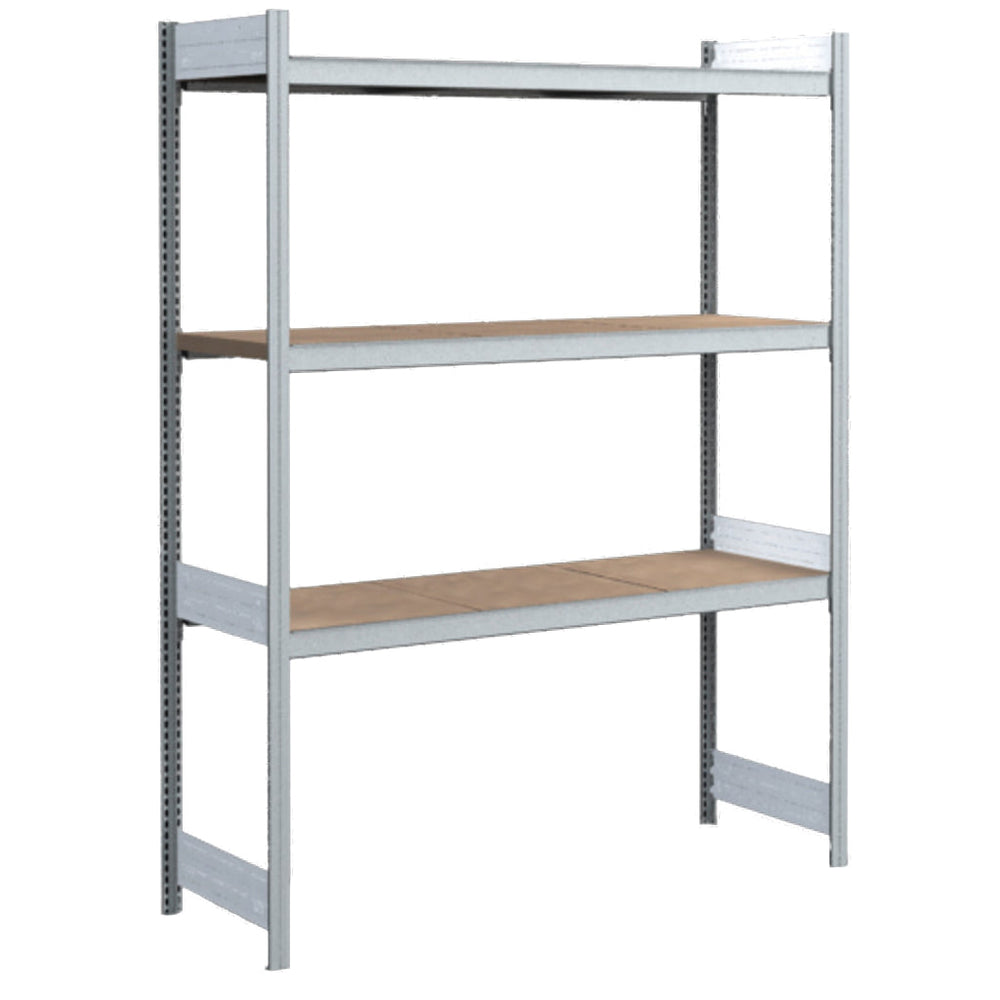 Großfachregal mit Spanplattenböden als Grundregal in glanzverzinkt von BITO | Fachlast 350 kg