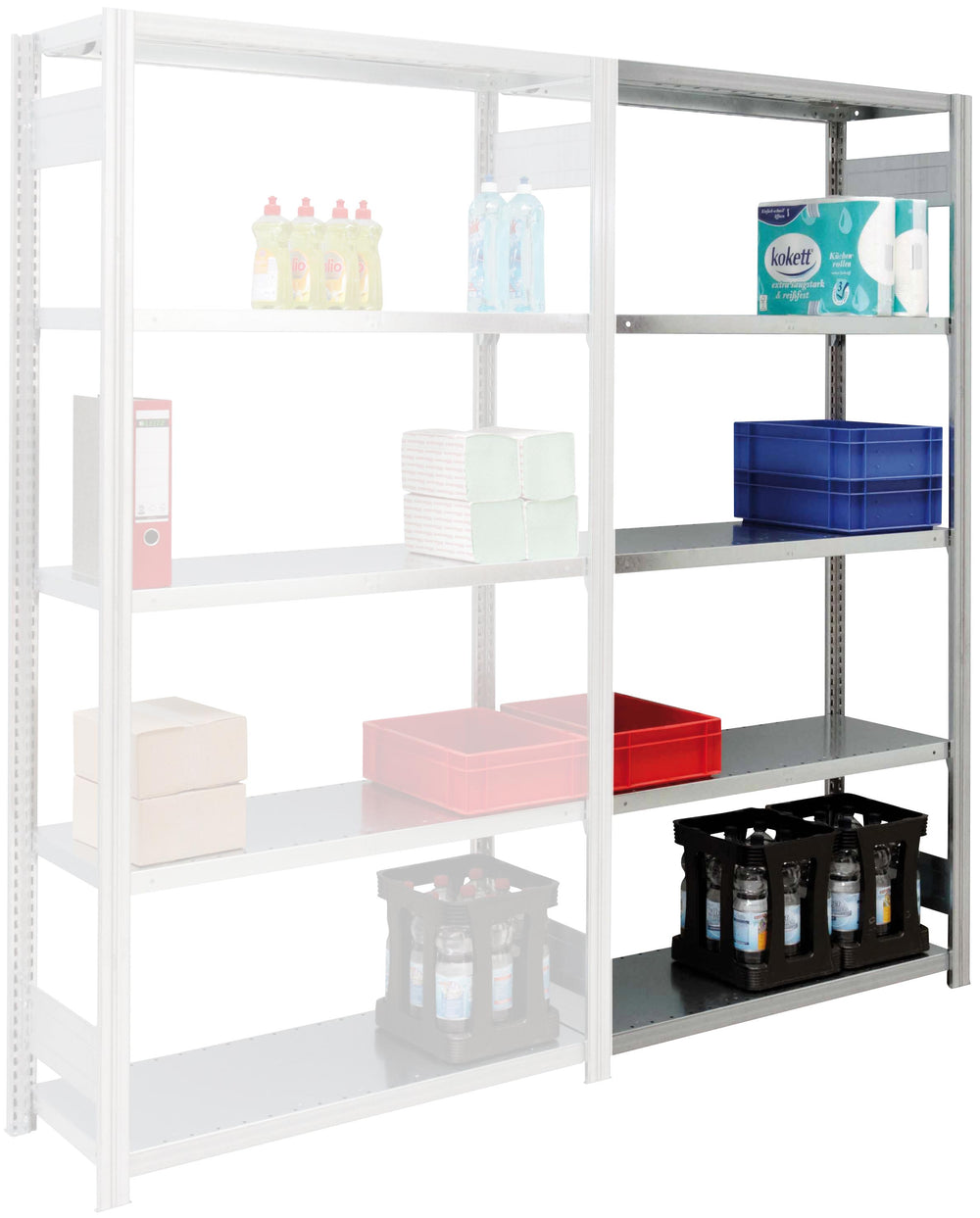 - Anzahl der Ebenen: 5, 6 oder 7 Stahlfachböden