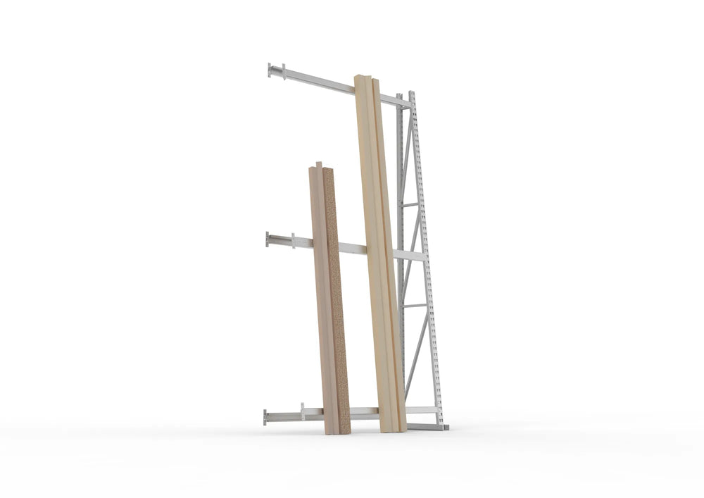 Einseitiges Grundregal zur stehenden leichten Lagerung von Langgütern (z. B. Profile, Stäbe, Paneele)